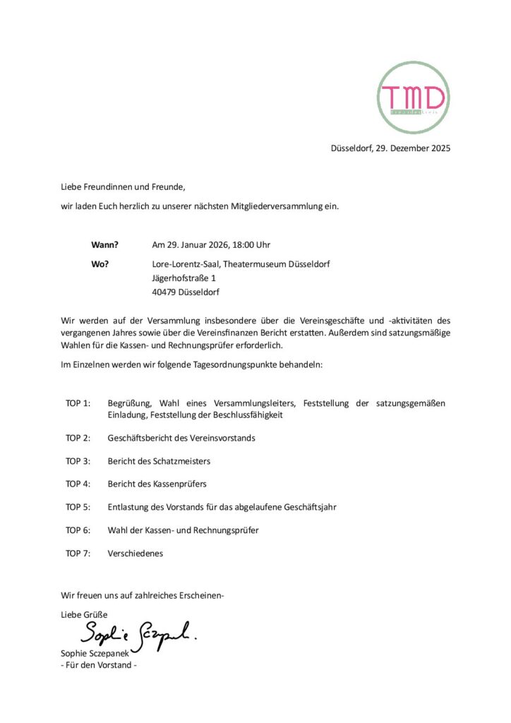 - Bei allen Eigenveranstaltungen des Theatermuseums erhalten Sie freien Eintritt + Exklusive Previews von TMD Veranstaltungen und Austellungen